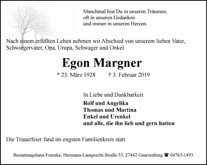 Hier finden Sie alle Traueranzeigen aus der Zeitung, die bisher für Egon Margner erschienen sind. Weitere Traueranzeigen, die in der Zeitung erscheinen, werden hier ebenfalls aufgelistet