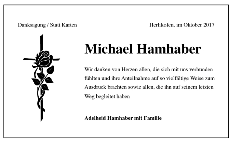 Hier finden Sie alle Traueranzeigen aus der Zeitung, die bisher für Michael Hamhaber erschienen sind. Weitere Traueranzeigen, die in der Zeitung erscheinen, werden hier ebenfalls aufgelistet