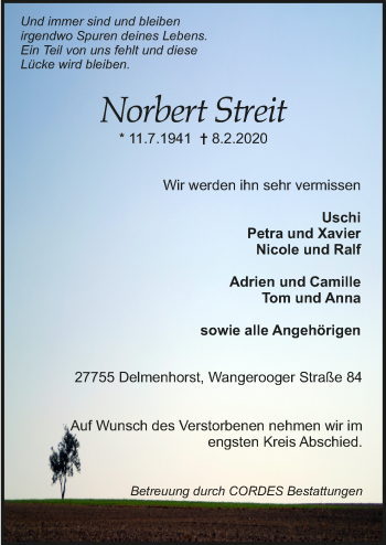 Pflanzen Sie einen Gedenkbaum für Norbert Streit